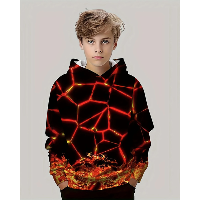Boys' 3D Graphic Hoodie Long Sleeve Spring Fall Fashion Streetwear Kids 4-12 Years Hooded Outdoor Casual Daily Regular Fit