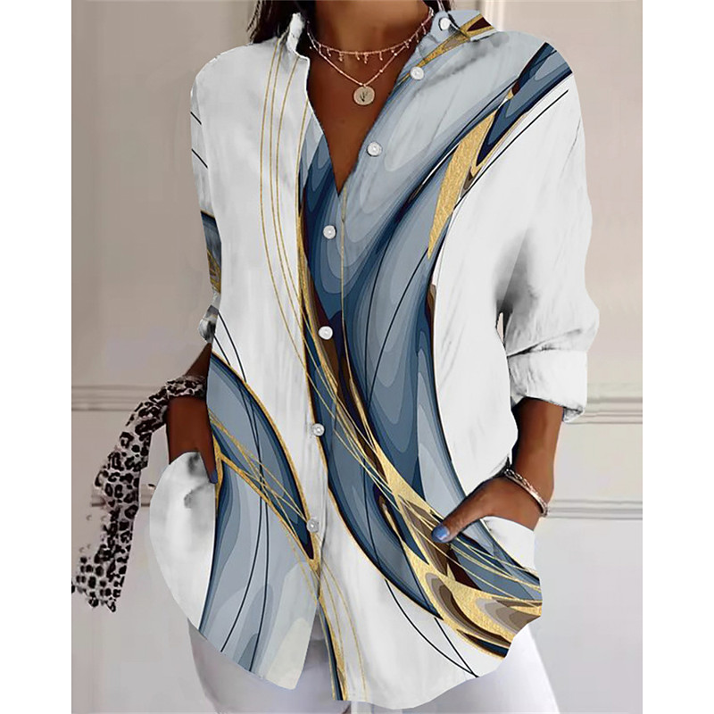Women's Shirt Abstract Active Daily Stylish Long Sleeve Shirt Collar Regular Tops Daily Holiday Buttons Print Blue Spring Fall