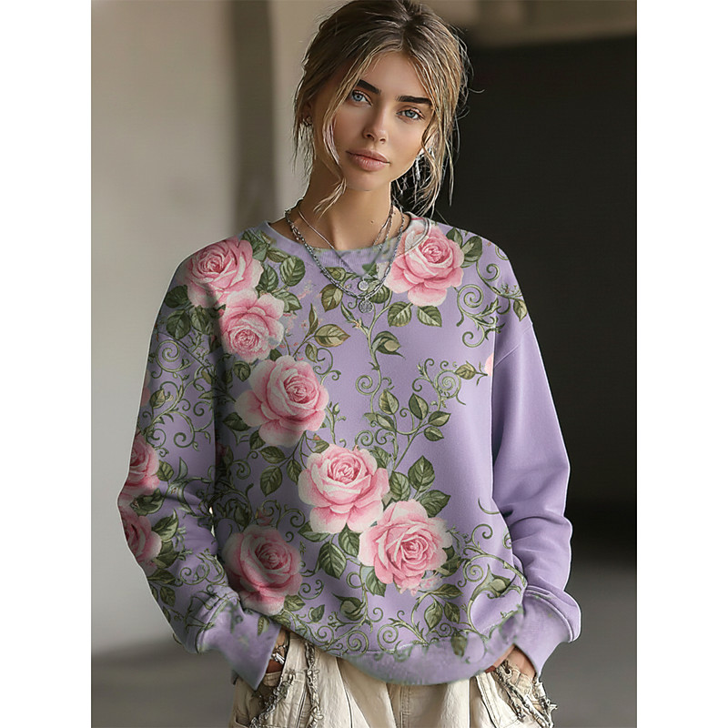 Women's Pullover Sweatshirt Floral Casual Long Sleeve Crew Neck Regular Tops Street Dailywear Casual Blue Purple Spring Fall Winter