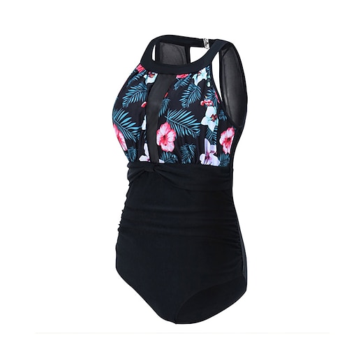 Per donna Top sottomuta Costume da bagno Costume da Bagno Floreale Costumi da bagno Nero / bianco Nero Protezione UV Controllo addominale Surf Spiaggia Vacanze Estate Taglie Forti