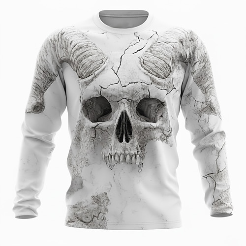 Per uomo Illusione ottica Diavolo Maschera Maglietta Manica Lunga maglietta Stampa 3D Girocollo Camicia Moda Esagerato 3D Streetwear Quotidiano Bianco Bianco 2 Estate Primavera Autunno Abbigliamento