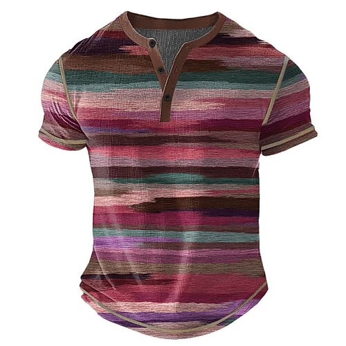 Per uomo Arcobaleno A righe Maglia Henley Maglietta a nido d'ape Manica Corta Quotidiano Retrò Vintage Classico Sport all'Aperto Casuale Ferie Primavera Estate Tutte le stagioni azzurro cielo Rosa