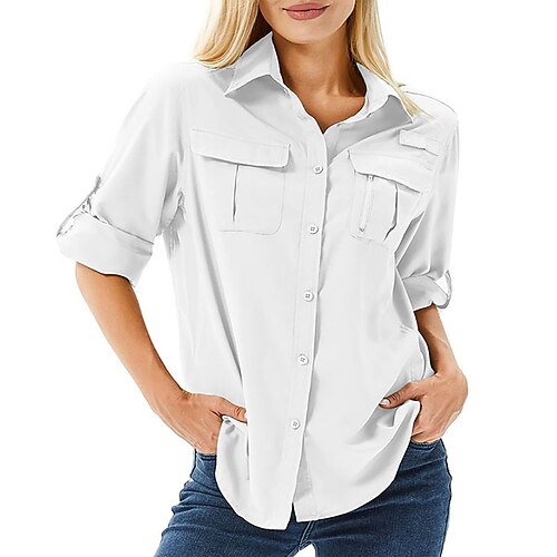 Per donna Camicia Blusa Semplice Casual Manica Corta Colletto a Camicia Top Regolari Quotidiano Uscire Tasca Bottoni Nero Bianco Azzurro cielo Cachi Grigio scuro Estate Primavera