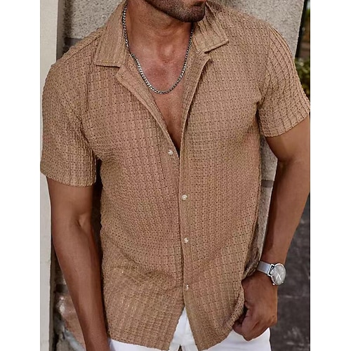 Per uomo Camicia Tessuto Camicia casual Camicia con Bottoni Nero Bianco Blu marino Azzurro cielo Kaki Manica Corta Semplice Colletto a Camicia Casuale Quotidiano Traforato Abbigliamento Moda Moderno