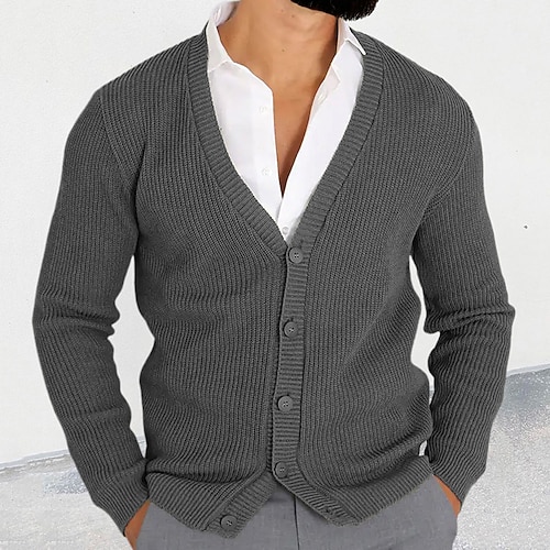 Herren Strickjacke Kurzer Pullover Zopfmuster Stricken Standard Button-Down Glatt V Ausschnitt Modisch Klassisch Freizeitskleidung Verabredung Bekleidung Herbst Winter Schwarz Militßrgrün M L XL