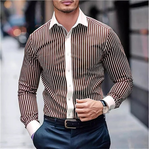 Herren Sommerhemd Freizeithemd Strandhemd Kragenhemd Knopfhemd Gestreifte Hemden Schwarz Blau Purpur Braun Grün Langarm Gestreift Revers Urlaub Ferien Button-Down Bekleidung Polyester Mode Lässig