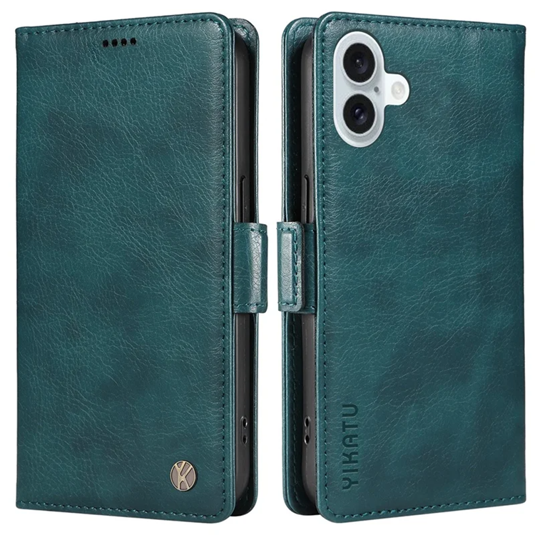 YIKATU iPhone 16 Plus Konstläder Plånboksfodral Litchi Texture - Blå