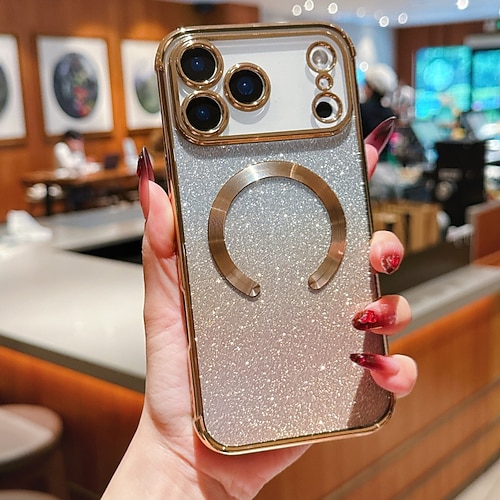 Handy Hülle Handyhüllen Für iPhone 16 15 14 Pro Max Plus 13 12 Pro Max Rückseite Magnetisch Unterstützt kabelloses Laden Bling Glitzer glänzend Retro TPU Beschichtung PC