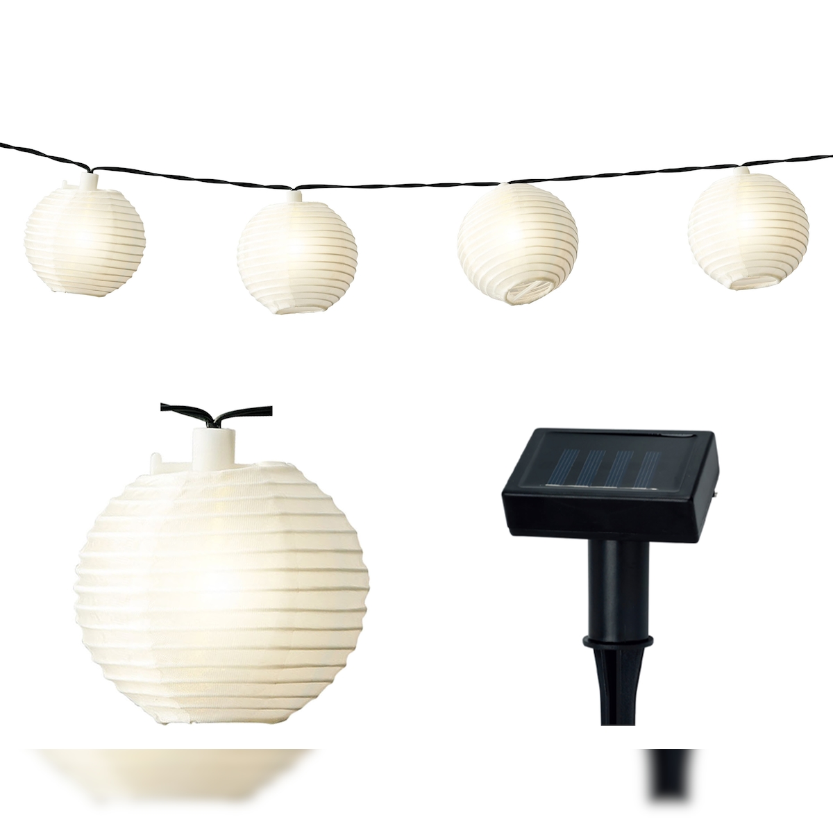 Lumineo LED Solar Lichterkette Lampions 3,5m Nylon Warmweiß