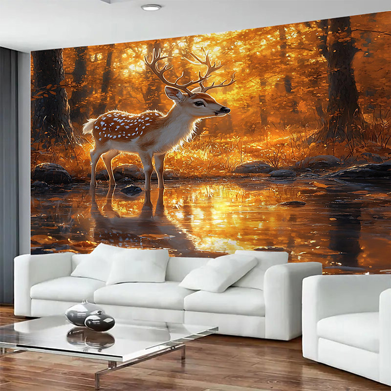 Large Autumn Forest Deer Animal Landscape Tapestry Wall Hanging Art Photography Background Blanket Curtain for Home Bedroom Living Room Decoration