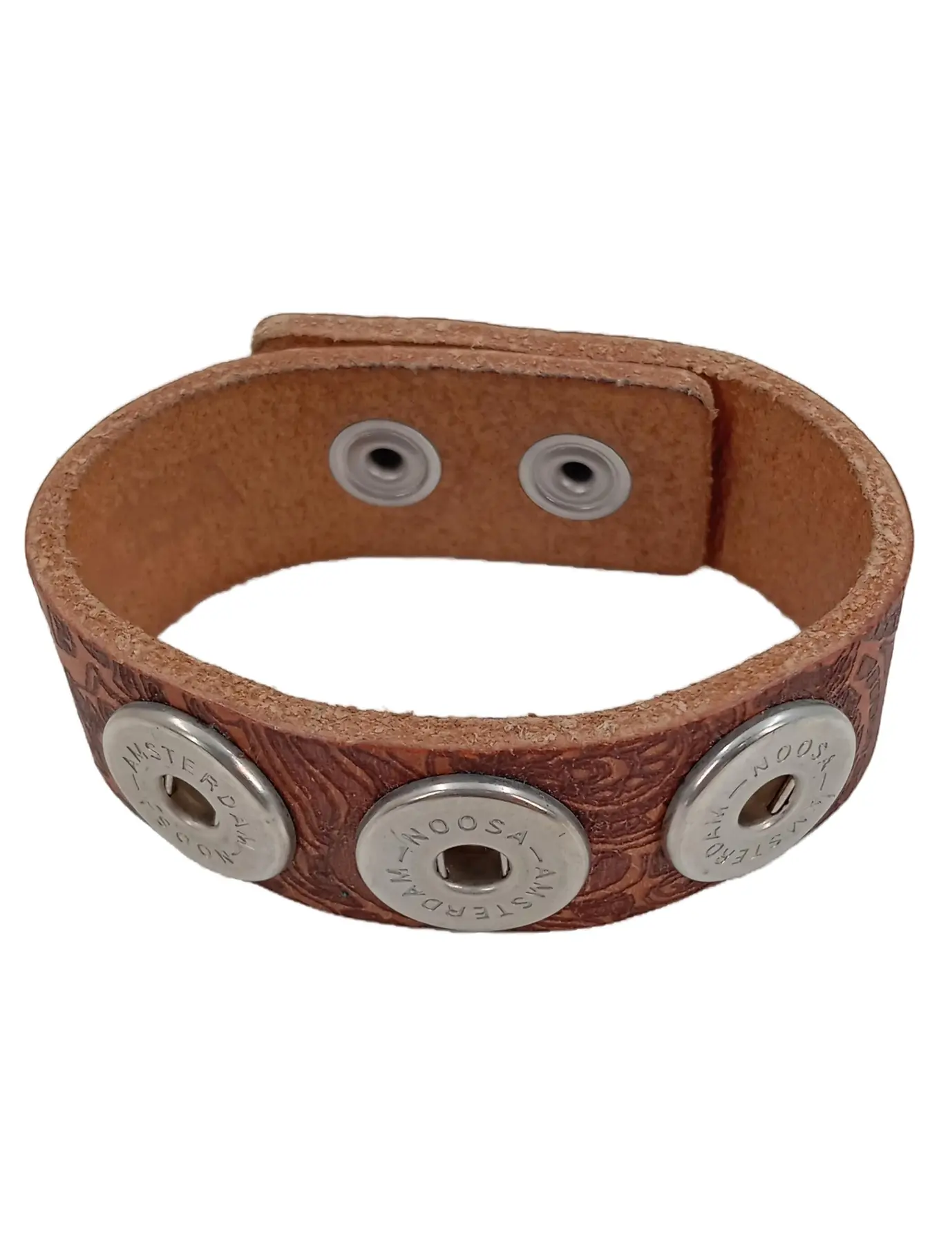 NOOSA AMSTERDAM Damen Armband Leder Braun 24 cm geprägt Metall Logo Druckknopfverschluss