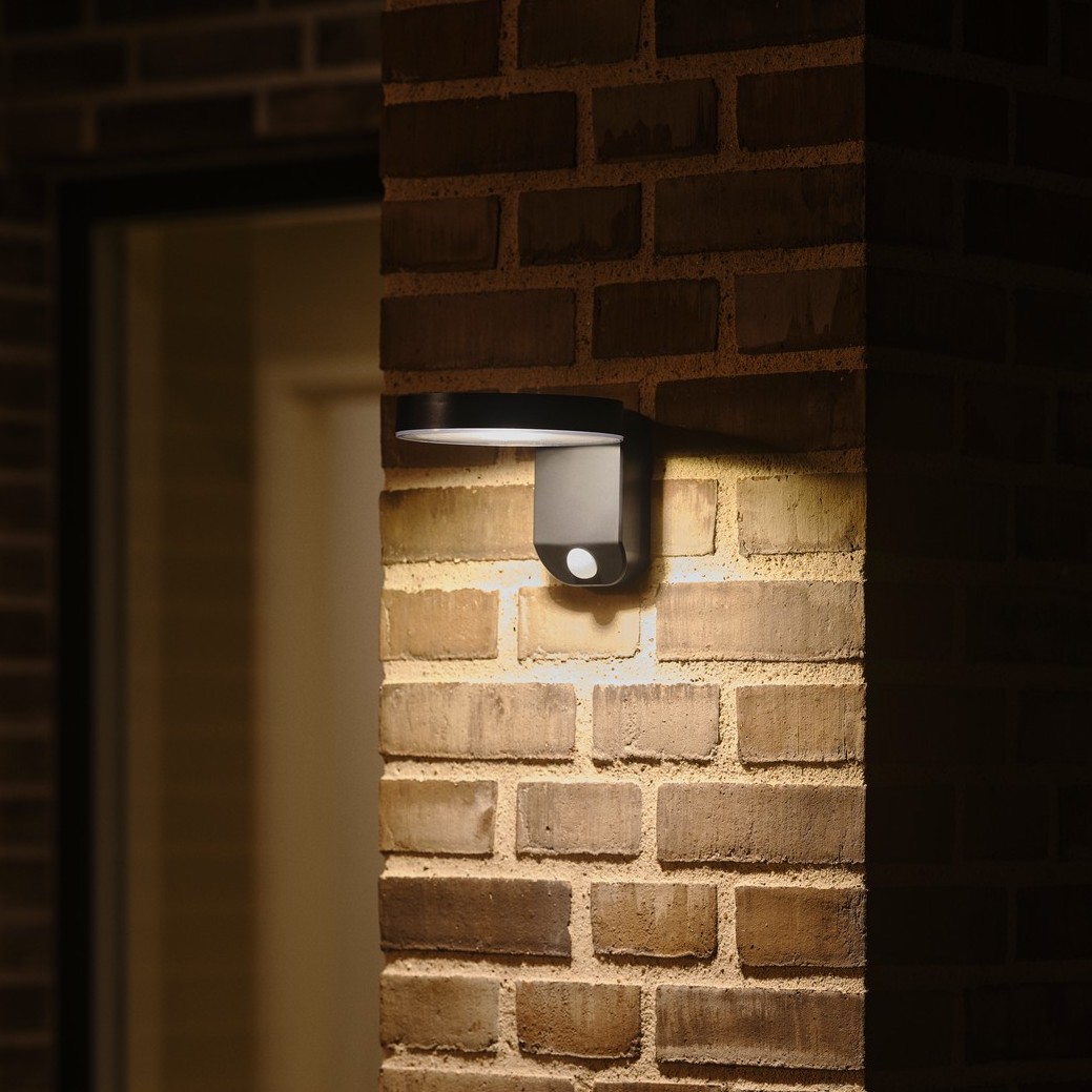 Nordlux Rica Round Solar - buiten wandverlichting op zonne-energie - Ø 15 x 12 x 18,2 cm - 5W LED incl. - IP44 - zwart