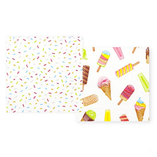 Home Fashion, Ice Cream, Cocktail-Servietten 25 cm x 25 cm, im Viertelfalz, 2 Designs je Packung, 20 Stück pro Pack