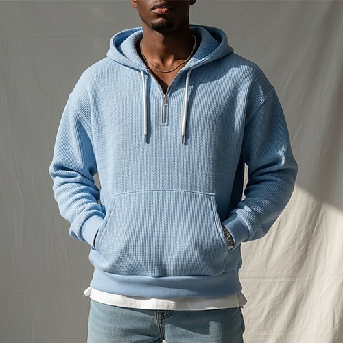 Per uomo Felpa con cappuccio Felpa con cappuccio a nido d'ape Blu Aalbicocca Rosso bordeaux Nero Verde chiaro Con Cappuccio Semplice Tasca a marsupio Testurizzato Sport Outdoor Casuale Quotidiano