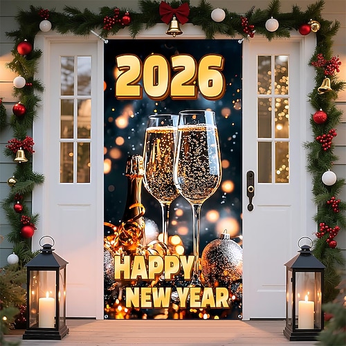 Capodanno Poster Copertura della porta Banner per esterni Buon anno 2026 Carino 3D Da serata Dormitorio Stanza per adolescenti Dormitorio universitario Ragazzi Man Cave Frat Bedroom Sfondi di ripresa