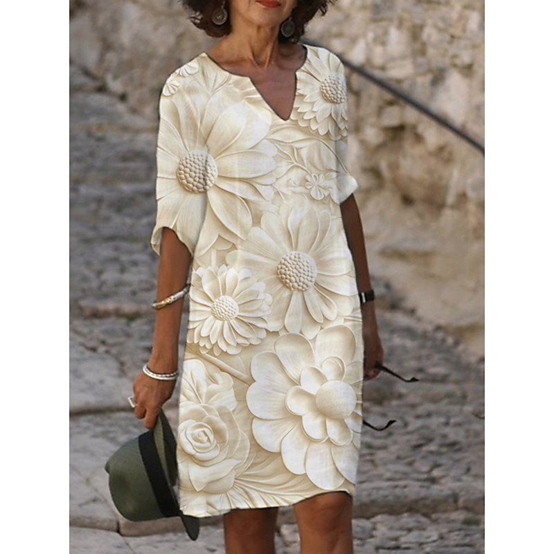Women's Midi Dress Casual Dress Print Dress Fashion Modern Daily Beach Weekend Regular Fit Floral 3/4 Length Sleeve Crew Neck Yellow Blue Purple Gray Summer Spring Fall Autumn