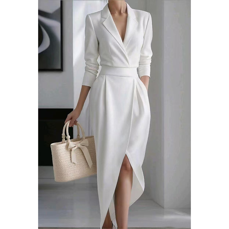Halloween Women's Midi Dress Wrap Dress Bodycon Dress Work Dresses Elegant Vacation Casual Slim Fit Plain Long Sleeve V Neck White Pink Blue Spring Fall Winter