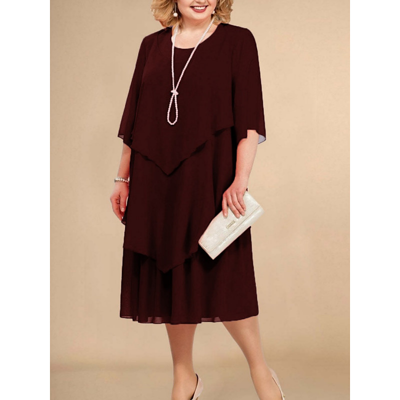 Women's Plus Size Casual Dress Solid Color Crew Neck Half Sleeve Spring Fall Elegant Fashion Modern Casual Midi Dress Daily Holiday Dress