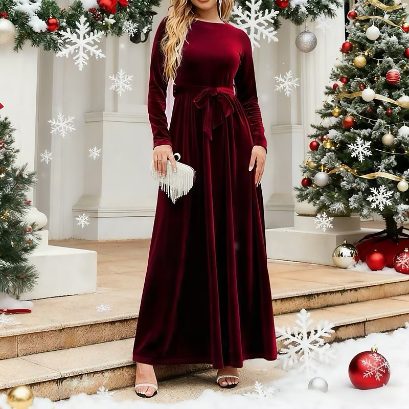 Women's Midi Dress Christmas Dress Velvet Dress Cocktail Dress Elegant Fashion Modern Christmas Outdoor Party Regular Fit Plain Long Sleeve Crew Neck Blue Black Red Dark Green Spring Autumn