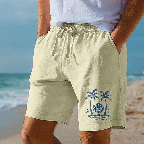 Per uomo Shorts Shorts di Lino Pantaloncini Estivi Shorts da Spiaggia Coulisse Elastico in vita Grafico Albero di Cocco Leggero Traspirante Lunghezza al ginocchio Casuale Quotidiano Spiaggia Vacanza
