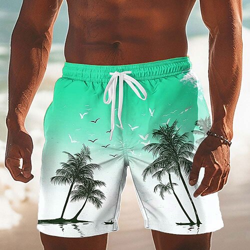 Per uomo Albero di Cocco Colore sfumato Piante Tropicali Costumi da bagno Pantaloncini da mare Pantaloncini da Surf Misura del girovita medio Hawaiano Vacanza al Mare Tasche Laterali fodera in rete