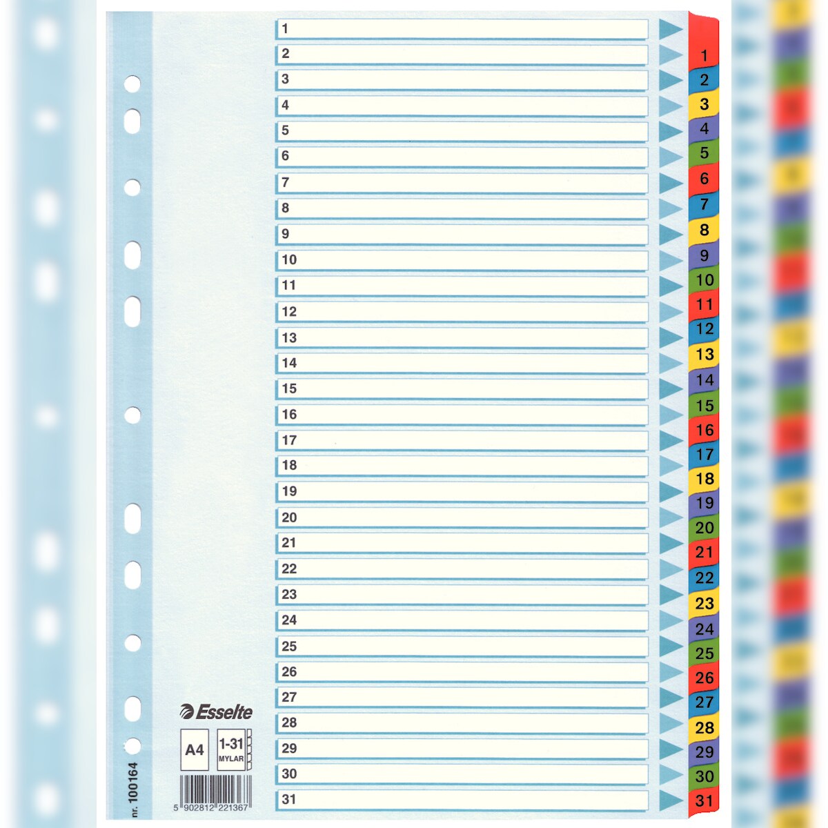 Esselte Mylar Register 100164 DIN A4 Mit verstärkten Taben Mehrfarbig 31-teilig 11 Löcher 160 g/m² Karton 1 bis 31