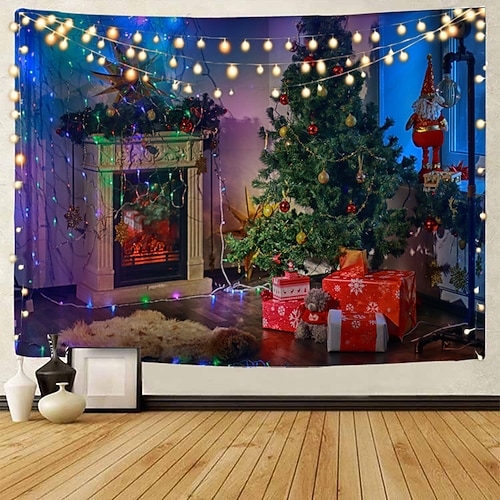 decorazioni natalizie babbo natale albero di natale festa di natale grande arazzo da parete decorazione artistica sfondo fotografico fondale coperta appeso casa camera da letto soggiorno camino calza