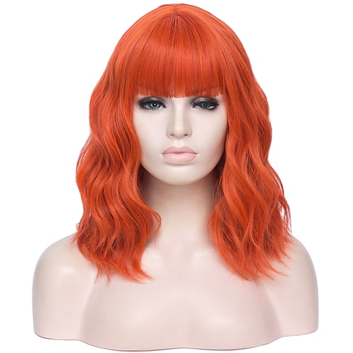 parrucche verdi per donna parrucche cosplay per donna bobo verde rosso blu viola arancione nero rosa parrucca corta parrucca sintetica riccia con frangia parrucche festa di natale parrucche festa di