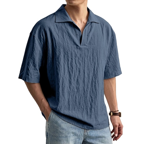 Per uomo Camicia di lino Polo Casuale Vacanza Classico Manica Corta Moda Tinta unica Bottoni Puro Estate Primavera Vestibilità regolare Nero Bianco Verde chiaro Blu marino Cachi Grigio Camicia di lino