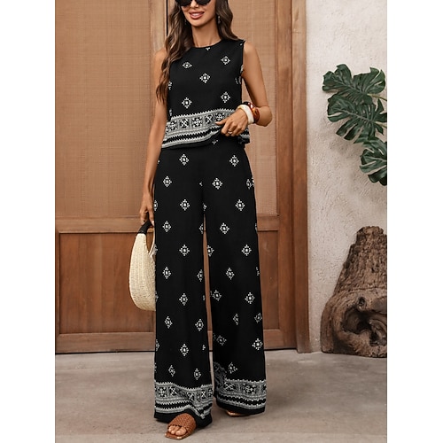 Per donna Set di Pantaloni Senza Maniche Girocollo Tinta unica Stampato Bohemien Punk Vacanza Casuale Quotidiano All'aperto Nero Estate Vestibilità regolare