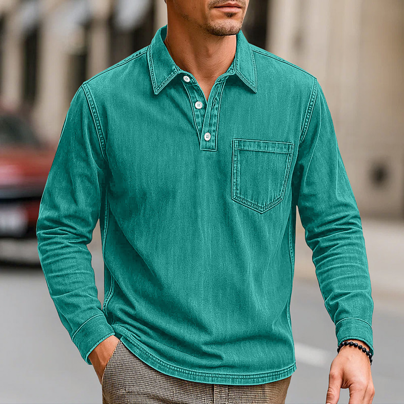 Men's Polo Shirts Golf Polos Shirts Street Business Classic Long Sleeve Vintage Basic Solid Color Plain Pocket Fall Winter Cross-Seasons Loose Fit Black Pink Navy Blue Blue Purple Brown Polo Shirts