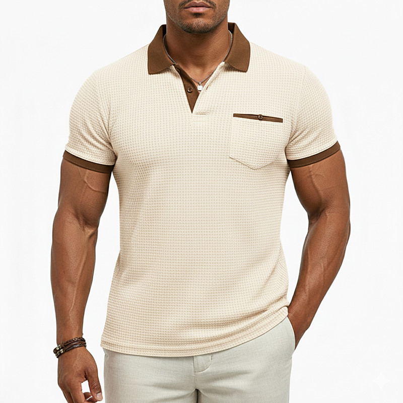 Men's Golf Shirt Waffle Knit Polo Shirt Casual Business Ribbed Polo Collar Classic Short Sleeve Fashion Modern Solid Color Buttons Summer Spring All Seasons Slim Fit White Pink Navy Blue Green Beige