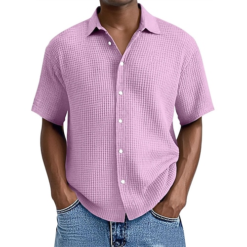 Per uomo Camicia Camicia a nido d'ape Camicia Estiva Camicia casual Camicia da Spiaggia Camicia con Bottoni Nero Bianco Verde chiaro Rosa Blu reale Manica Corta Semplice Bavero Vacanza Camicia
