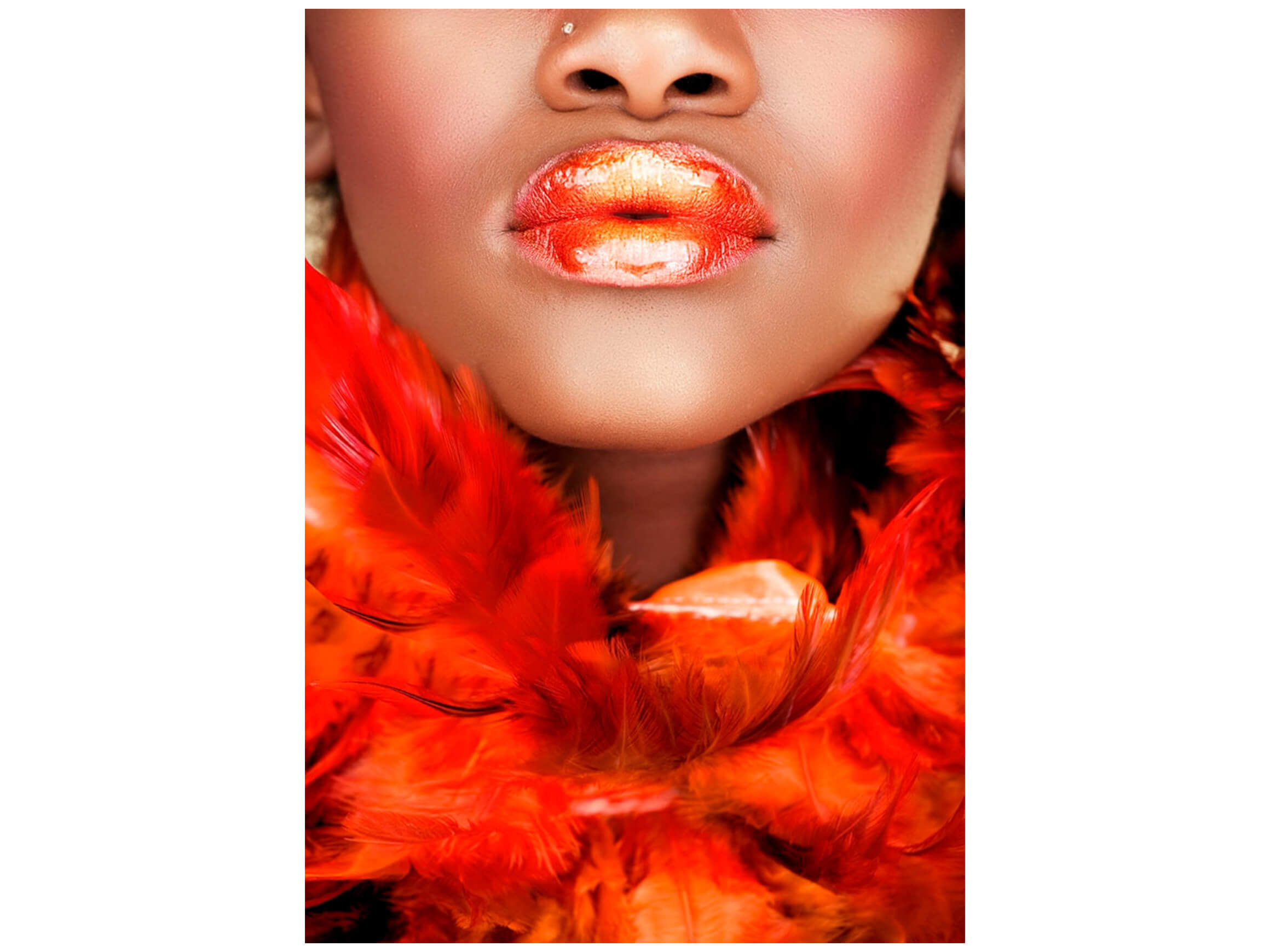 image LAND Digitaldruck auf Glas Schönheit mit Roter Federboa | Schubiger Möbel