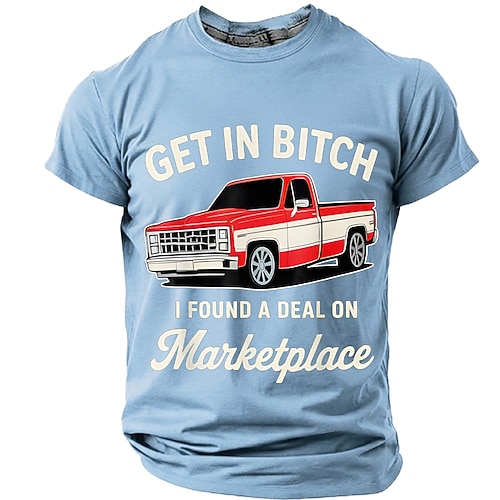 Herren-T-Shirt „Get in bitch I found a deal on Marketplace" – Vintage roter Pickup-Truck, witziger Humor, sarkastischer Retro-Aufdruck, Kurzarm, Grafik, Geschenk für Auto-Fans, Designer-Kleidung,