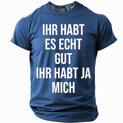 Maglietta grafica divertente da uomo 'Hai una buona vita hai me' Maglietta con slogan tedesco per umorismo tra famiglia e amici