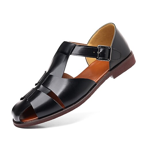 Sandali da uomo in similpelle marrone con cinturino con fibbia retrò e supporto plantare, perfetti per le passeggiate quotidiane, per l'uso all'aperto e per i viaggi in vacanza.