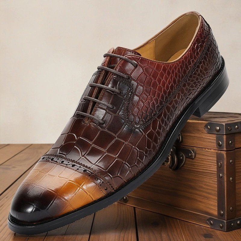 Men's Crocodile Pattern Genuine Leather Oxford Shoes – Dual-tone Lace-up Shoes for Fashion-forward Men, Business Dinners and Evening Receptions