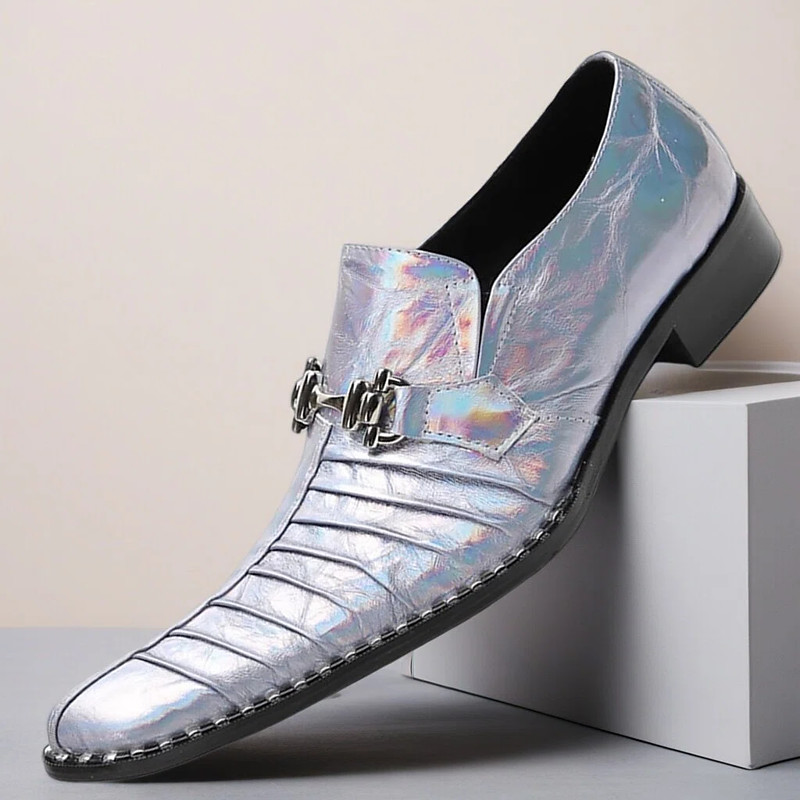 Men's Silver Formal Slip-On Shoes with Buckle, Premium Wedding Shoes for Groom and Groomsmen, Elegant Footwear for Wedding Ceremonies and Receptions