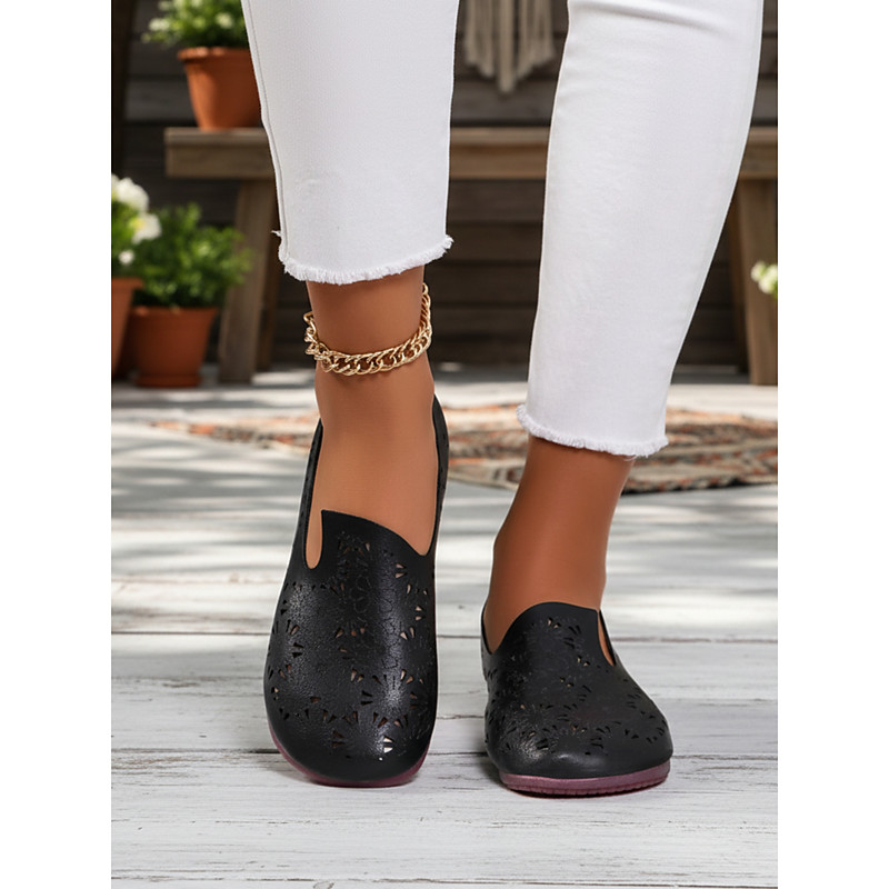 Women's White Perforated Wide-fit Slip-On Shoes with Floral Cutout Design, Breathable Comfort Shoes for Casual Wear, Travel and Everyday Style