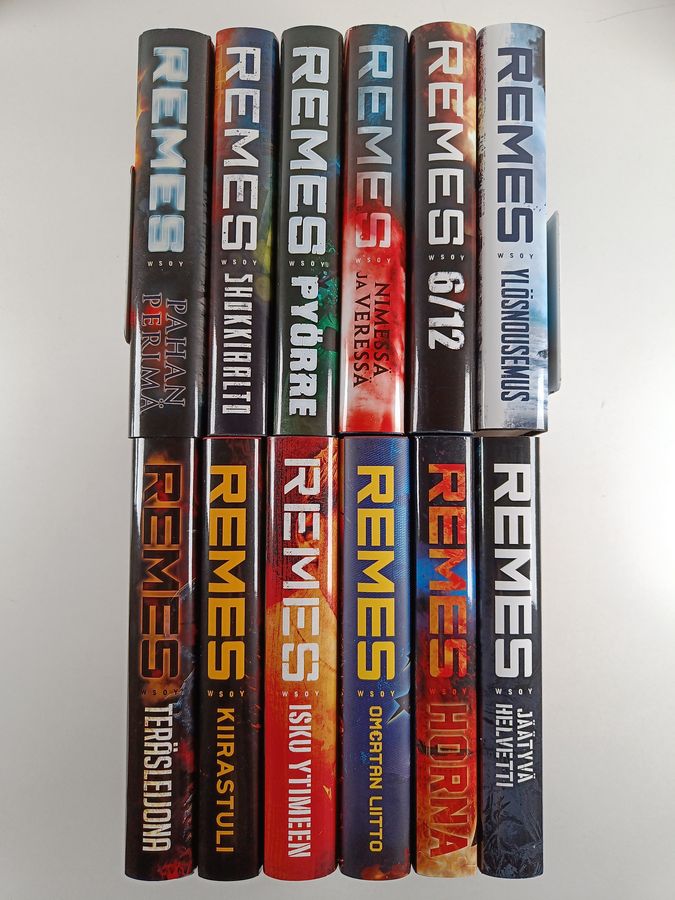 Ilkka Remes : Ilkka Remes -setti (12 kirjaa) : Shokkiaalto ; Isku ytimeen ; Jäätyvä helvetti ; Teräsleijona ; Kiirastuli ; 6/12 ; Horna ; Nimessä ...