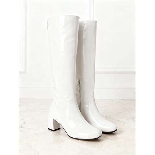 stivali alti fino al ginocchio in vernice bianca da donna con cerniera laterale - stivali con tacco spesso in stile disco vintage anni '70 per cosplay, moda retrò ed eventi