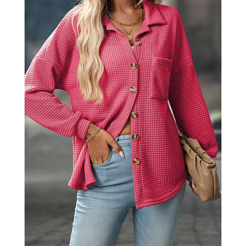 Women's Blouse Dressy Tops Plain Elegant Vintage Ladies Long Sleeve Shirt Collar Long Tops Work Daily Holiday Pocket Buttons Black Army Green Brown Apricot Rose Pink Fall Winter