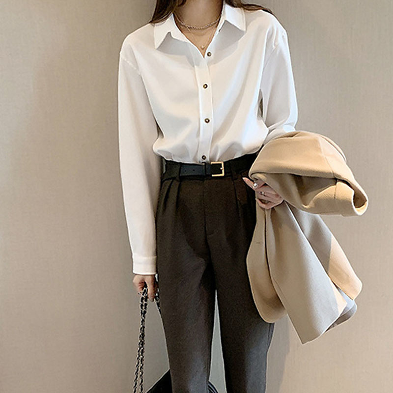 Women's Blouse Dressy Tops Plain Elegant Vintage Ladies Long Sleeve Shirt Collar Regular Tops Work Daily Holiday Ruched Patchwork Buttons White Red Khaki Gray Fall Winter