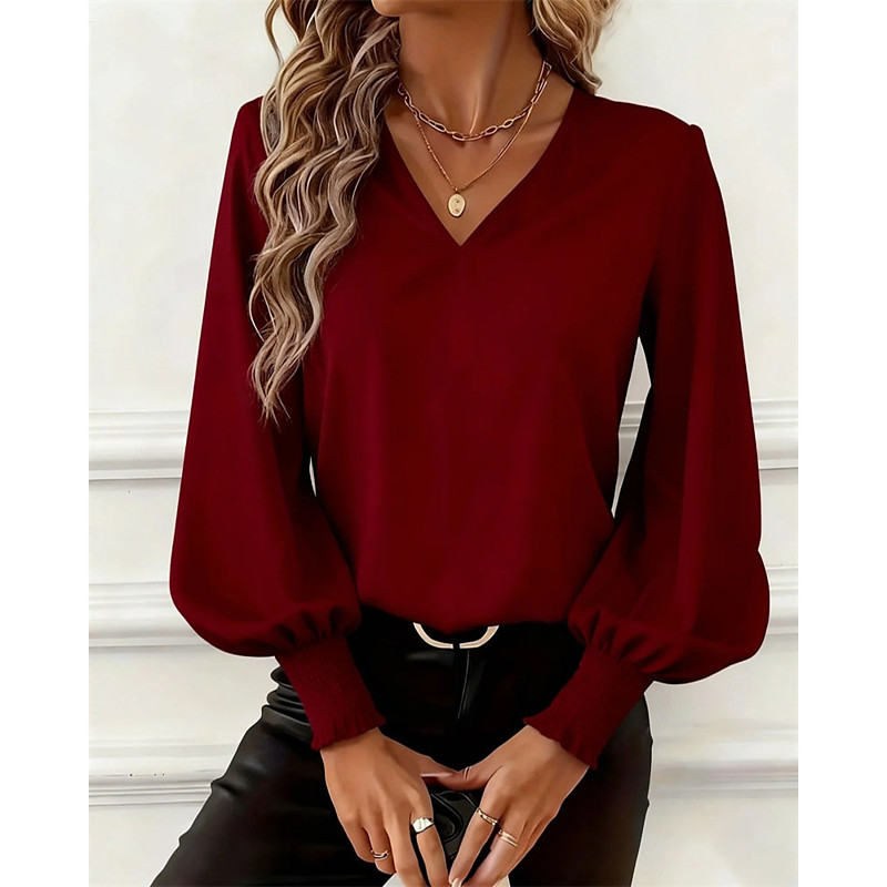 Christmas Women's Dressy Tops Plain Elegant Vintage Daily Long Sleeve Bishop Sleeve V Neck Regular Tops Blue Black White Pink Wine Spring Fall Winter