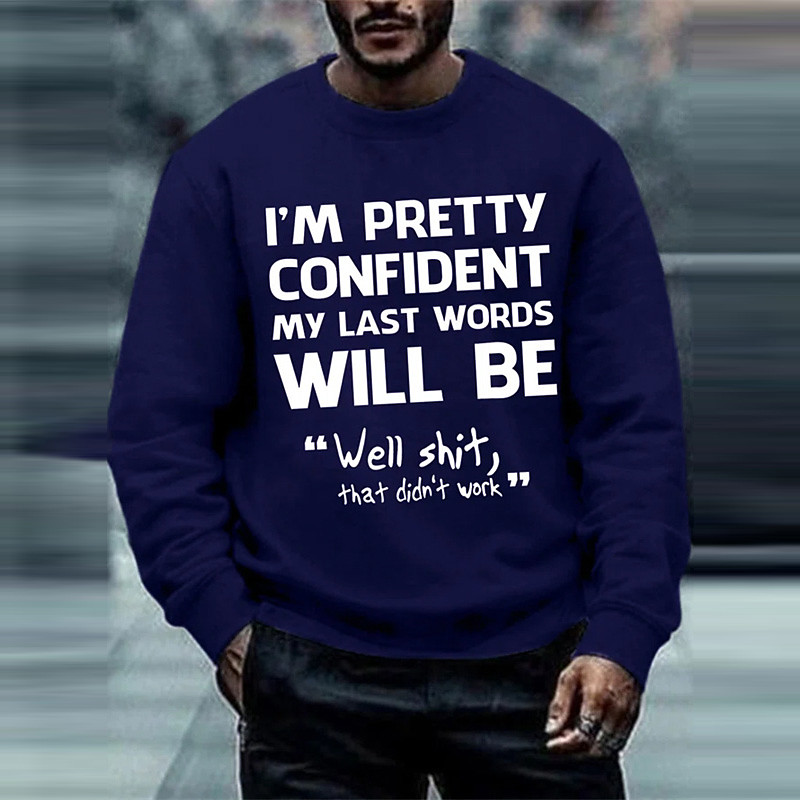 Men's Funny Long Sleeve Sweatshirt: 'Well Shit, That Didn't Work' Quote Graphic Crewneck