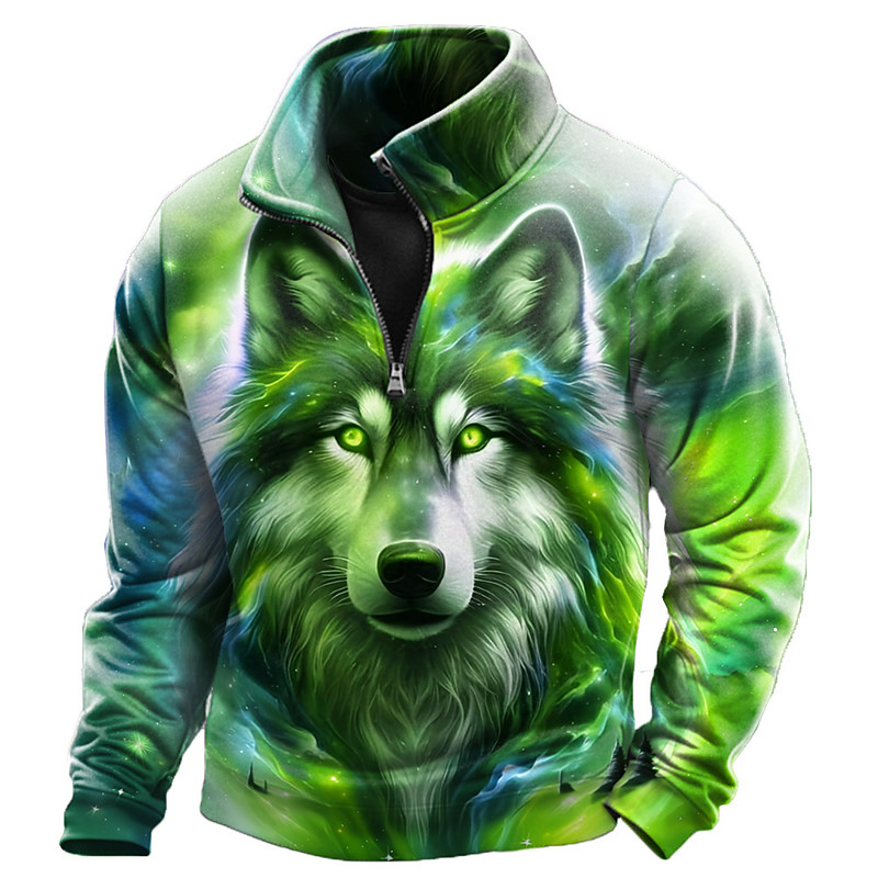 Men's Wolf Sweatshirt Sports Fashion Casual Zip Home Streetwear Work Party Blue Green 2# Green Fall All Seasons Designer S M L XL XXL XXXL
