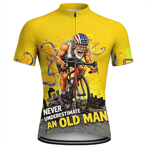 Da uomo Maglia da Ciclismo Maglia da downhill Non sottovalutare mai un vecchio con una bicicletta Manica Corta Bicicletta Maglia Maglietta con 3 tasche posteriori Resistente ai Raggi UV Asciugatura