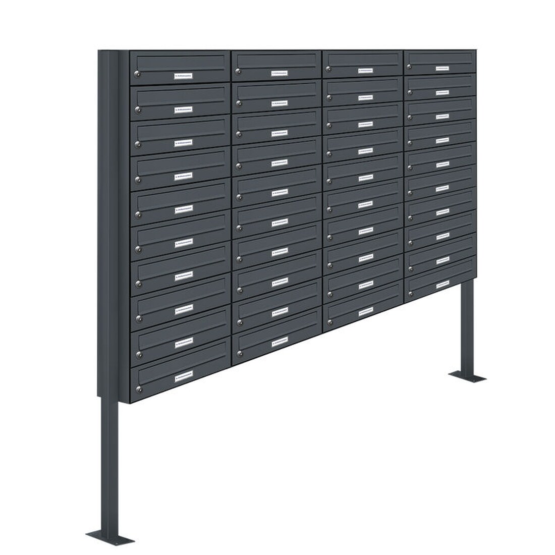 AL Briefkastensysteme 40 Fächer Premium Stand Briefkasten Anlage in RAL 7016 Anthrazit Grau, Post A4, robust, wetterfest, Artikelnummer: 132P40S4P7016