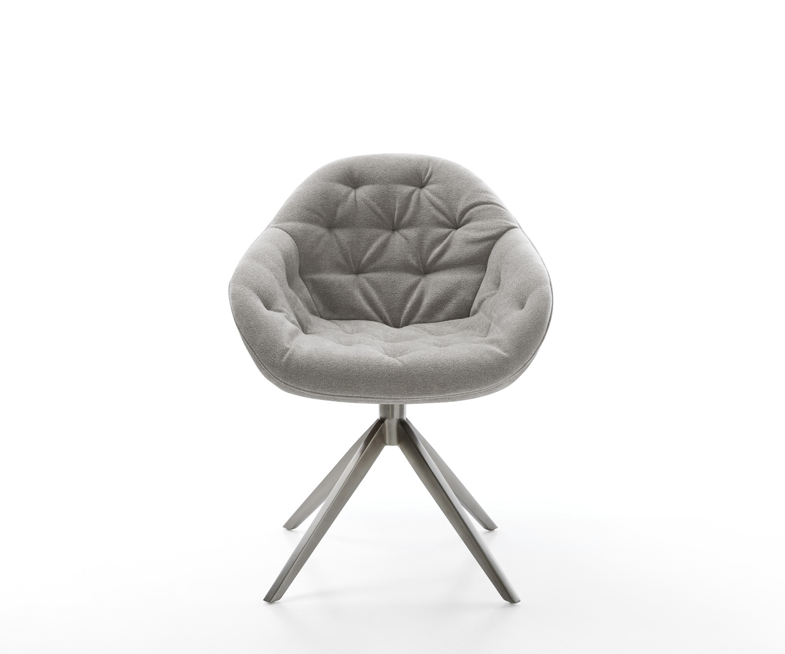 DELIFE Draaistoel Vinka-Flex met armleuning bouclé zilver grijs kruisframe breed roestvrij staal 360° draaibaar rocker-functie pocketveer kern
